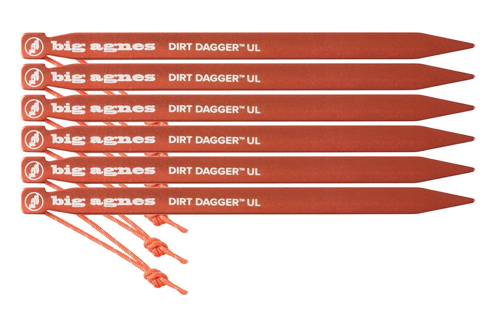 The Big Agnes Dirt Dagger Tent Stakes are designed with I-Beam aluminum construction for a stronger stake-out to keep your tent or shelter in place. While also helping keep you safely protected from the elements.