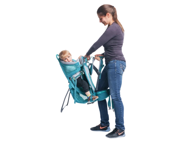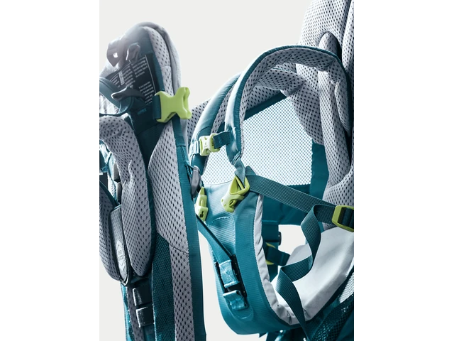 The carrying system is specially adapted to the female anatomy. For mothers looking for a child carrier that fits them perfectly with slimmer shoulder straps and conically shaped hip fins. The new, compact Lite Air contact back with ventilation makes this child carrier absolutely lightweight. The sporty frame offers the height of comfort and naturally bears the TÜV GS safety seal of approval. The seating area for the child is a comfort zone with its simple-to-use and easy-to-access safety harness, the side access and the very soft cover material.
