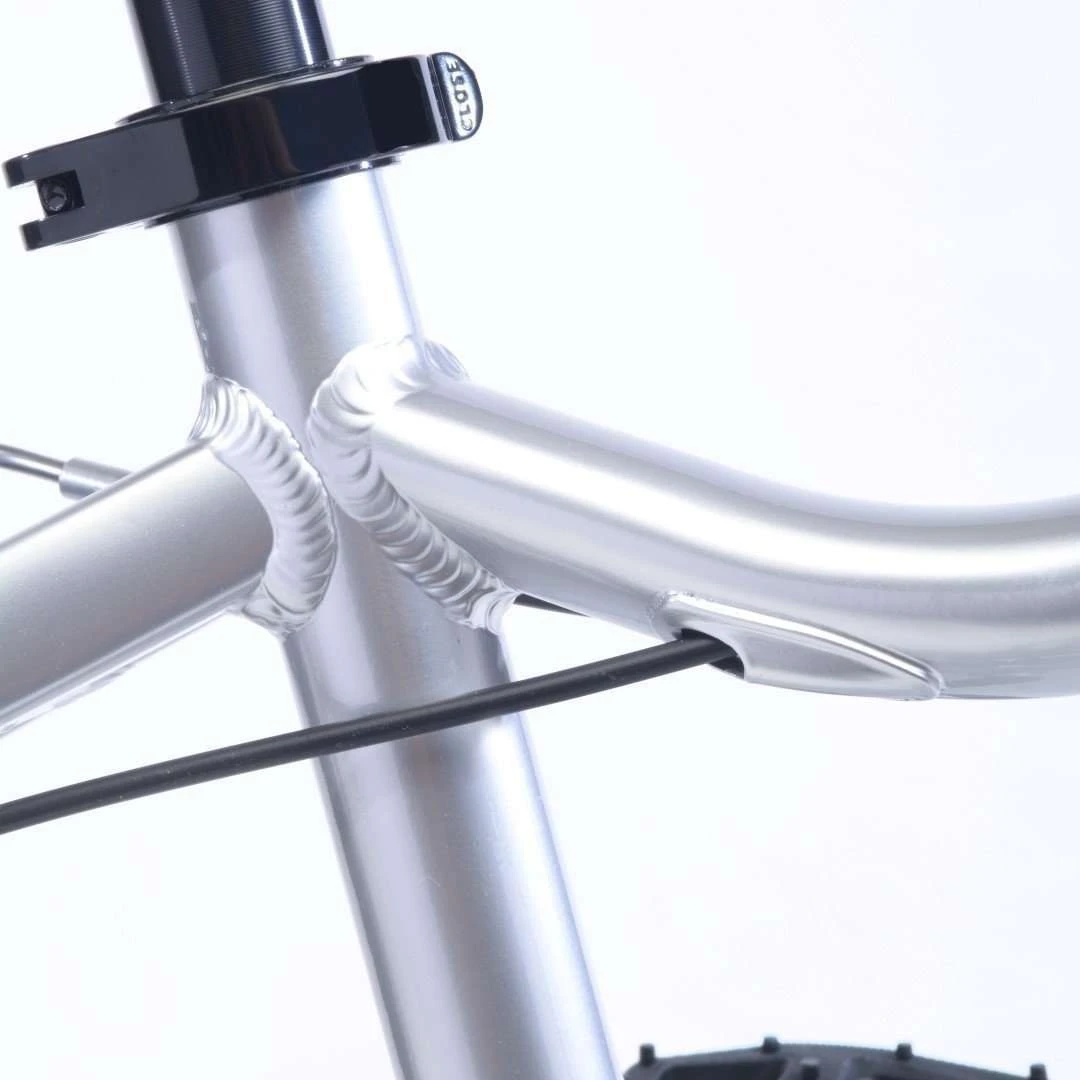 - Lightweight 6061 aluminum frame with custom-formed tubing.