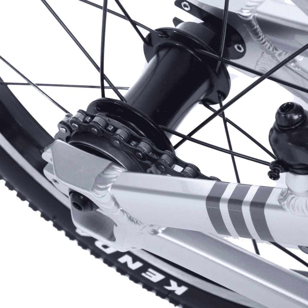 - Front and rear hubs with low profile rounded hex bolts and no harsh edged nuts for little legs to knock against.
