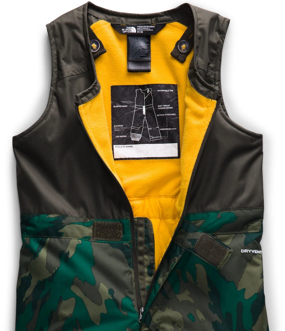 The North Face Toddler Insulated Bib Pants, are great for those active little people. Waterproof and warm! Fleece-lined, front zipper, and waterproof make these pants comfortable and easy to put on and take off.