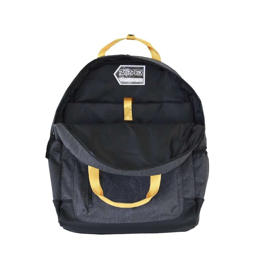 In the dark days of winter on the way to school, or on the late ride back from a summer session at the skate park, know your kid will be seen with the ultra-cool Zapped backpack! Specially designed fabric that looks cool in the day becomes a bright reflective safety feature when hit by light in the dark! Being safe can be cool!