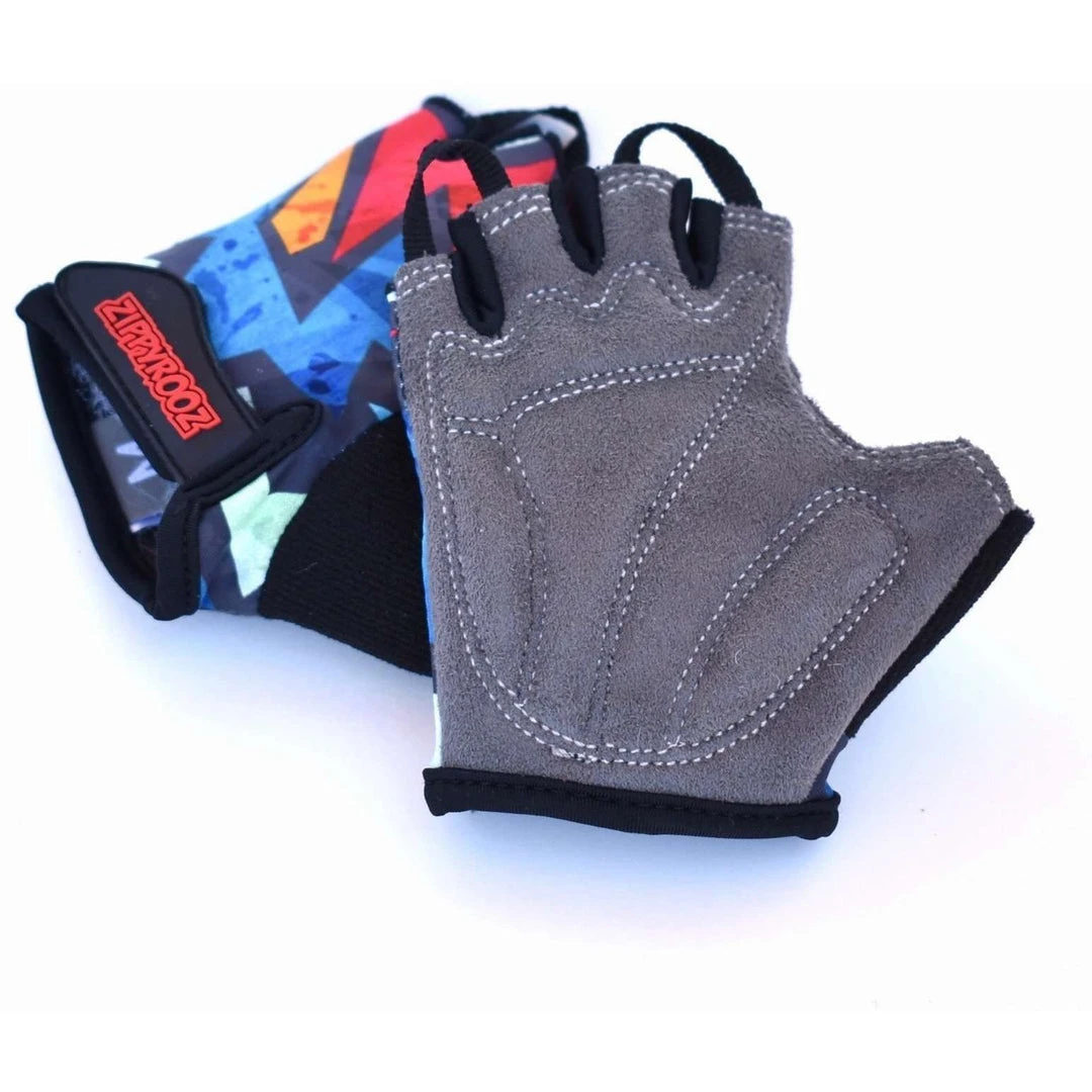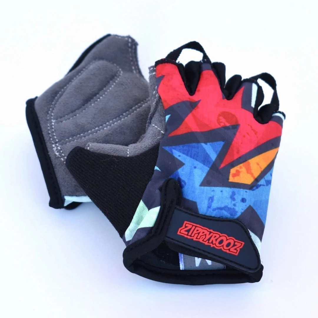 Kapow! You are now a bike-riding superhero! A fully padded half finger glove for your little ripper, that fits ages 1-8. The Zippyrooz half fingered gloves have pull tabs that help with taking off. A wide opening with velcro closure allows for ease of putting on, and a soft thumb for runny noses. What else could you what in a kids’ glove? Oh yeah, they are comfortable and durable as well! Please check out the full-fingered version if looking for less padding.