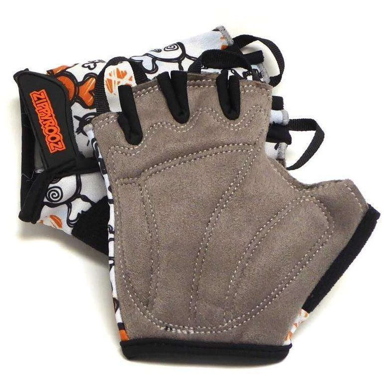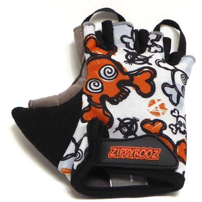 Hardcore skull and crossbones! A fully padded half finger glove for your little ripper, that fits ages 1-8. The Zippyrooz half fingered gloves have pull tabs that help with taking off. A wide opening with velcro closure allows for ease of putting on, and a soft thumb for runny noses. What else could you what in a kids’ glove? Oh yeah, they are comfortable and durable as well! Please check out the full-fingered version if looking for less padding.